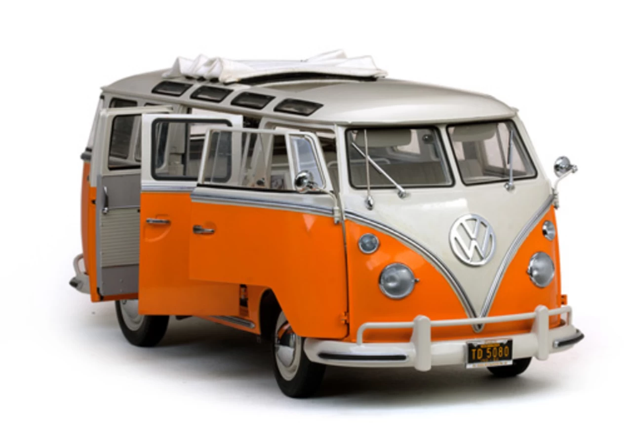 Brand New In Box 1/12 Sunstar 1962 Volkswagen Samba Bus (Orange & Beige) Diecast Car Model
