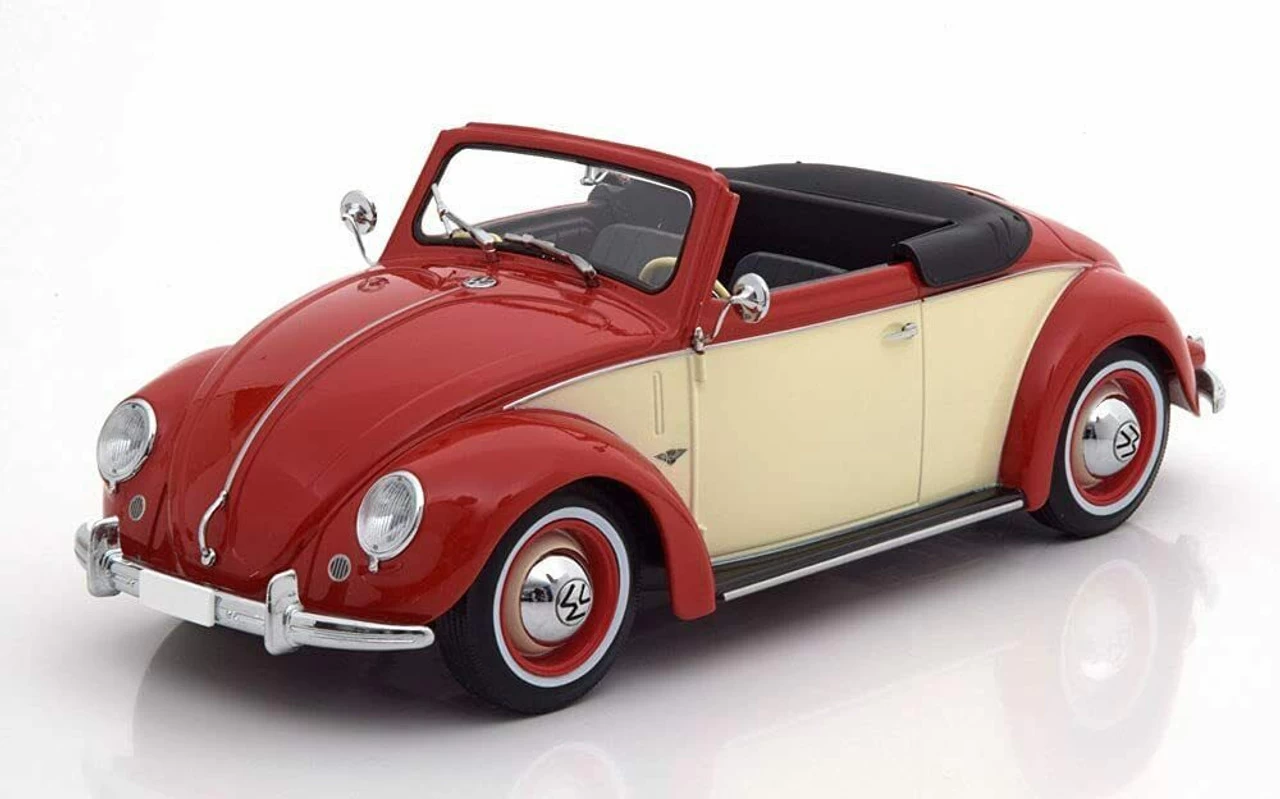 1/18 KK-Scale 1949 Volkswagen VW Beetle 1200 Hebmüller Cabriolet (Red & Cream) Diecast Car Model