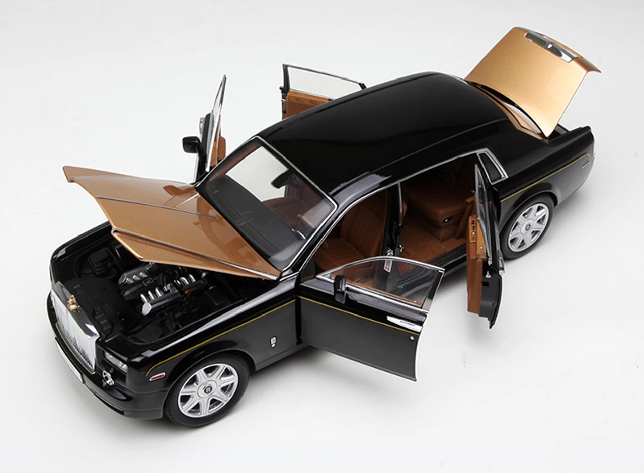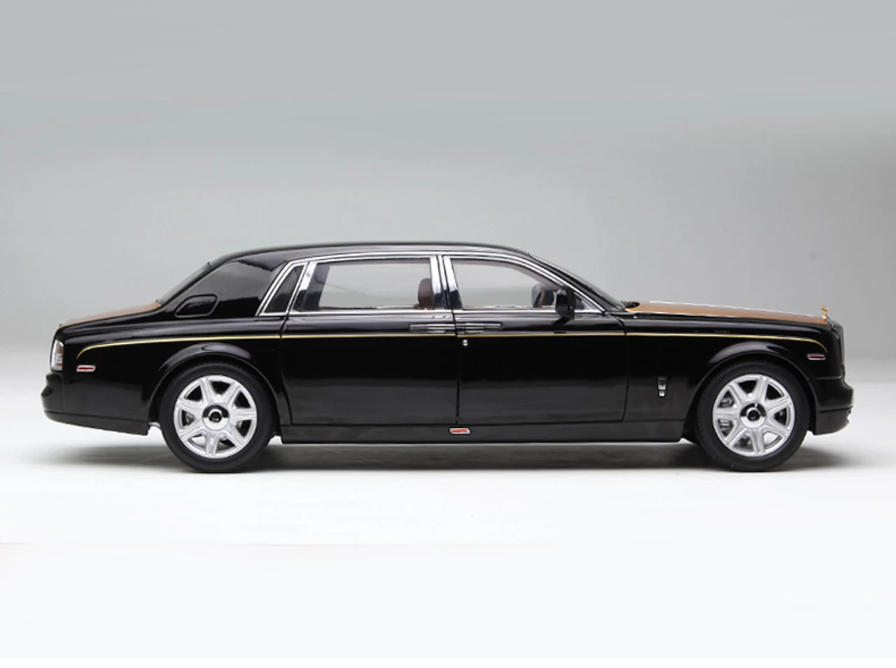 Brand New In Box 1/18 Kyosho Rolls-Royce Phantom EWB (Black w/ Gold Hood) Diecast Car Model