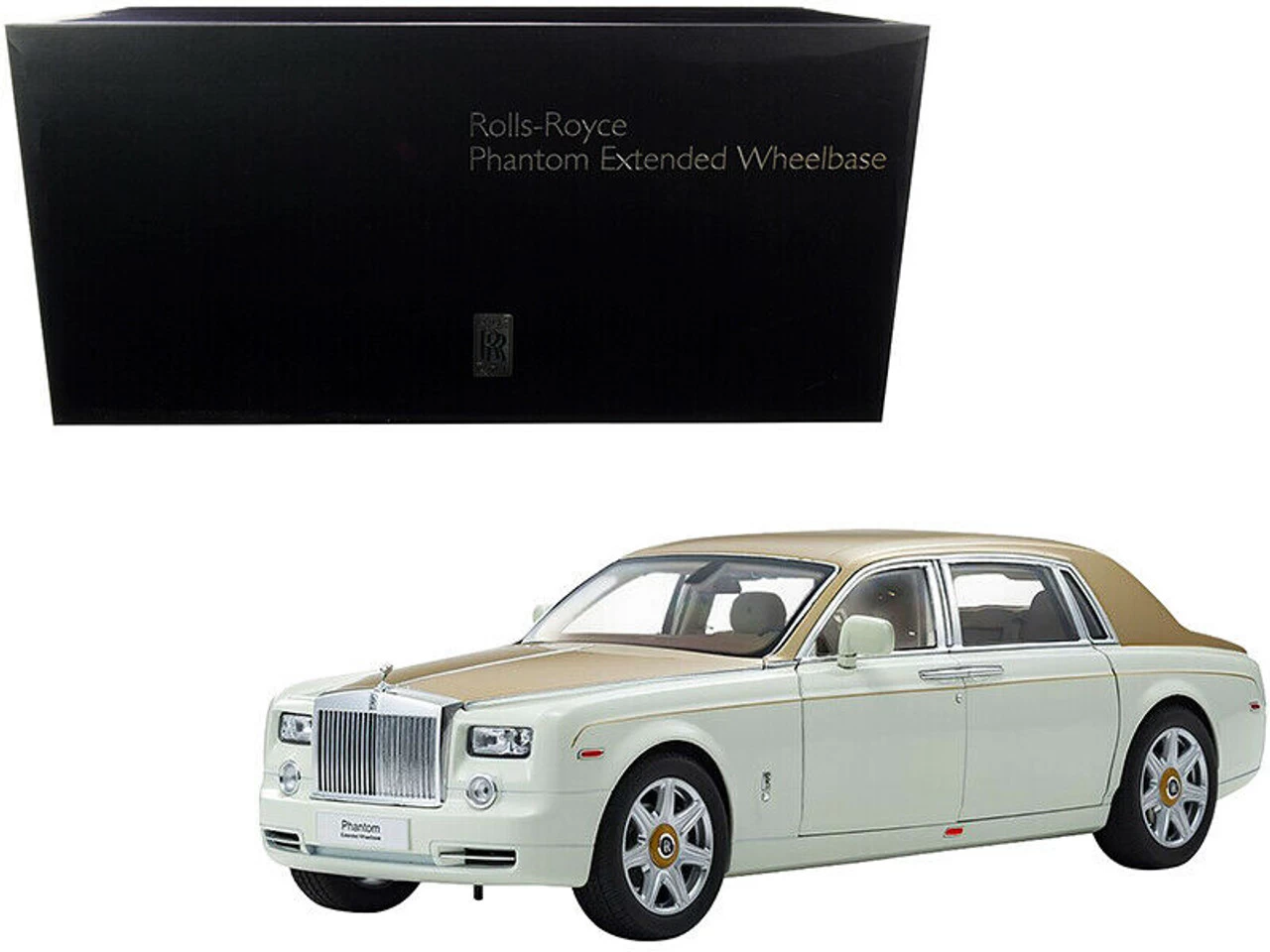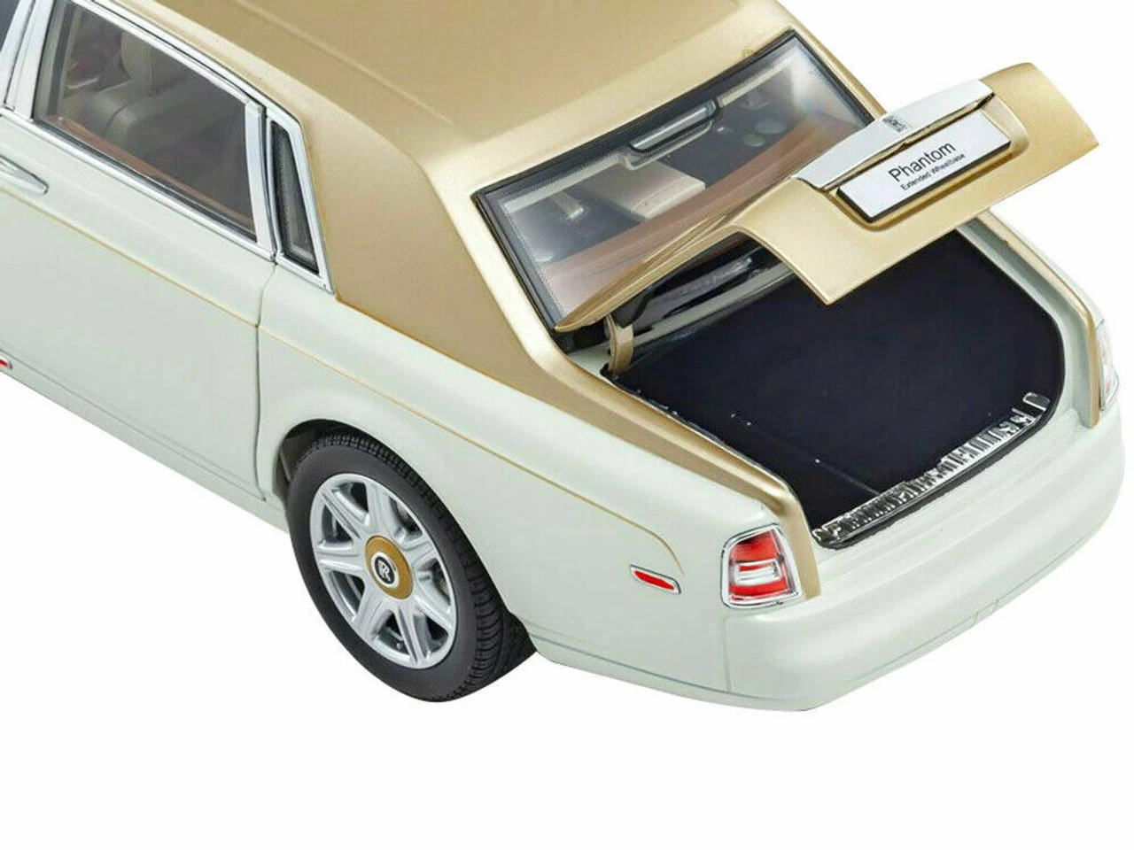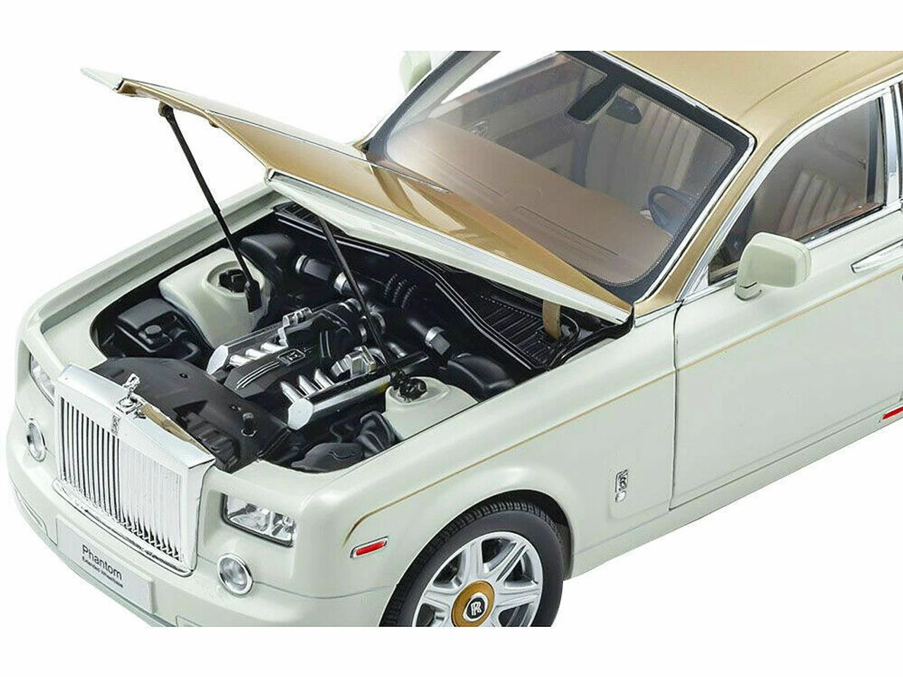 Brand New In Box Highly Detailed 1/18 Kyosho Rolls-Royce Phantom Extended Wheelbase (EWB) (English White w/ Gold Hood) Diecast Car Model