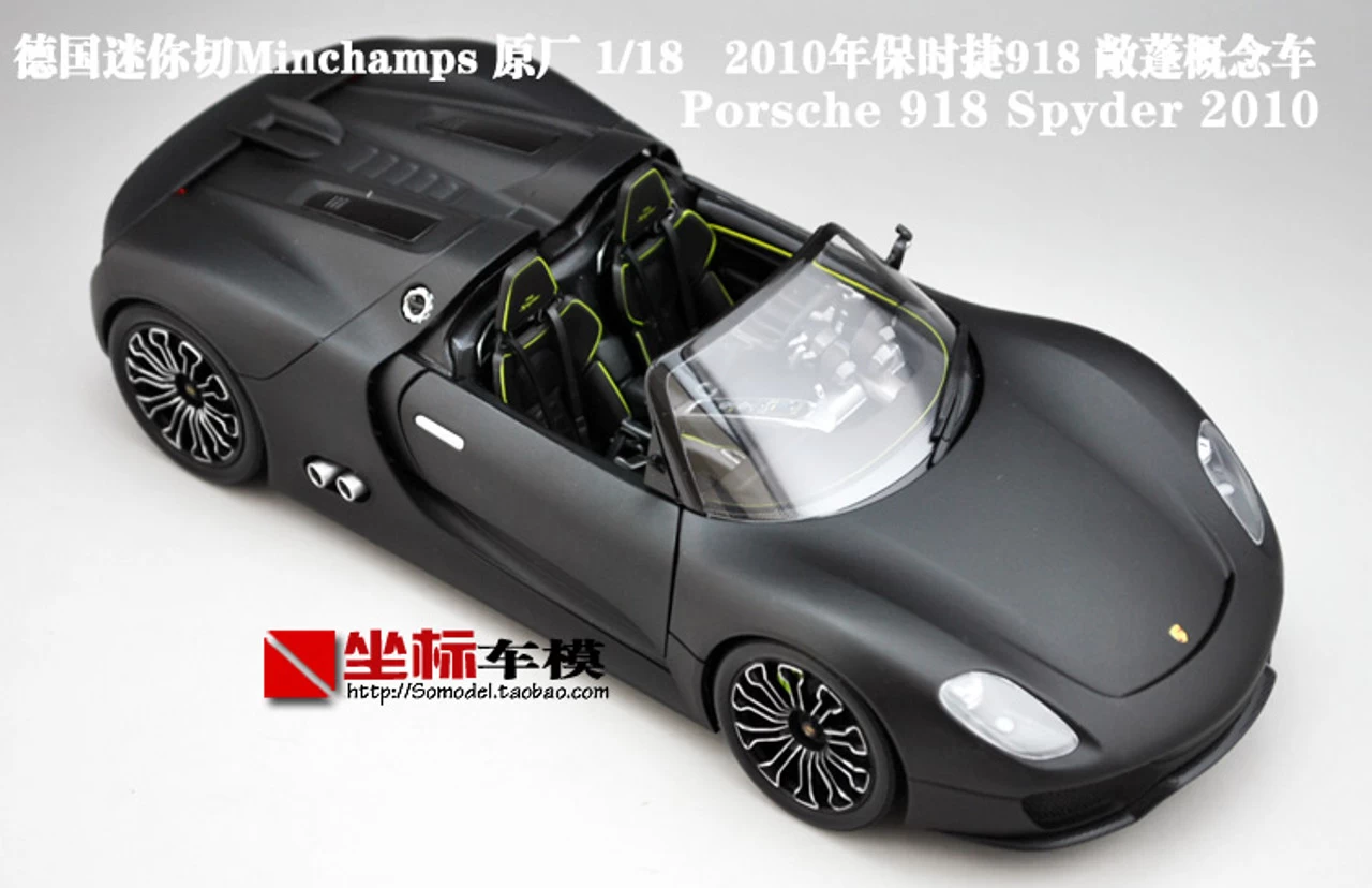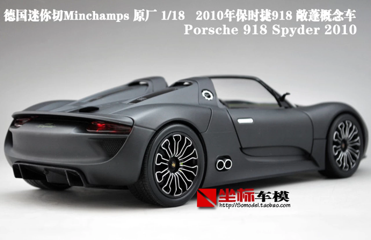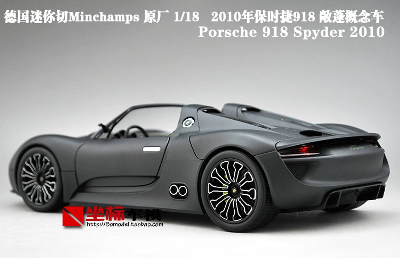 Brand New In Box Highly Detailed 1/18 Minichamps Porsche 918 Convertible (Matte Black) Diecast Model