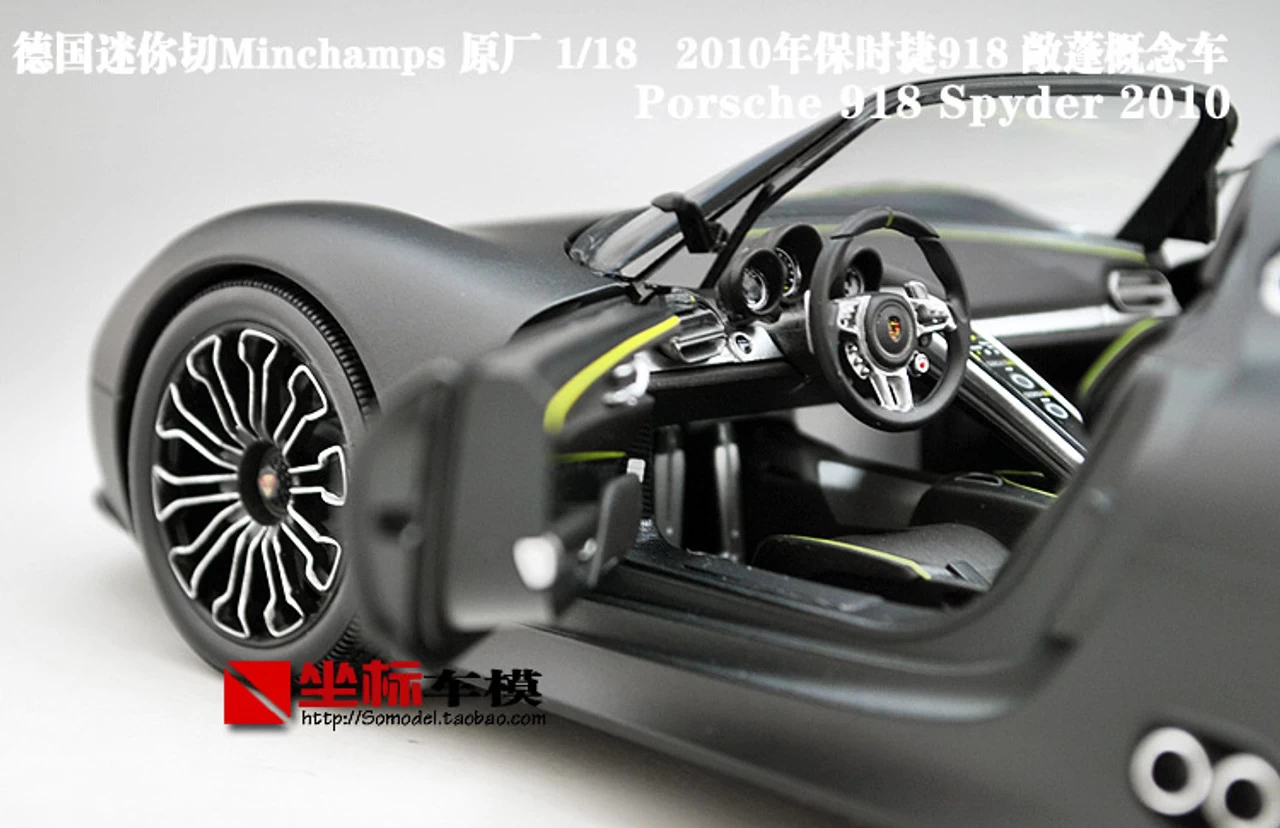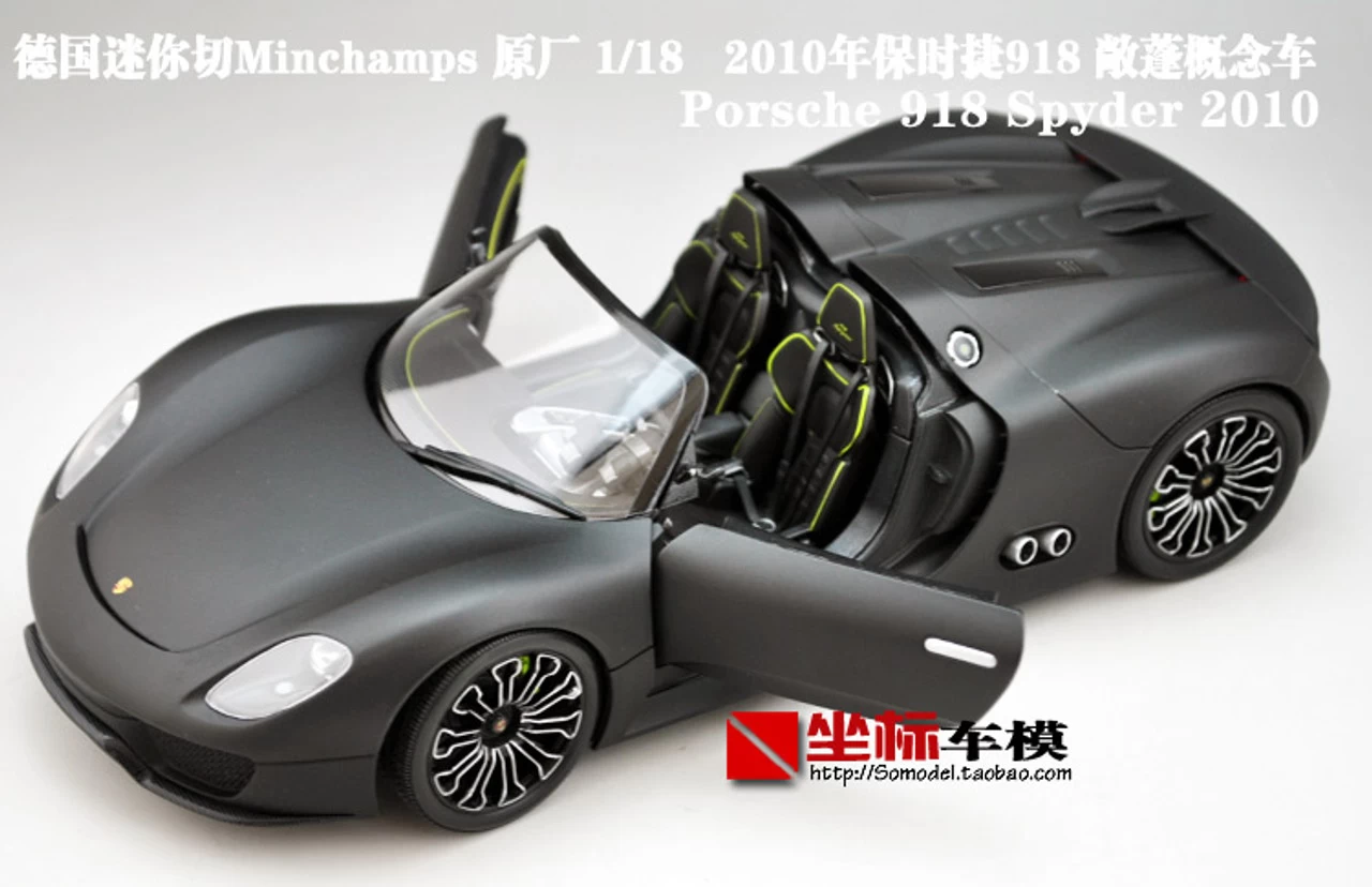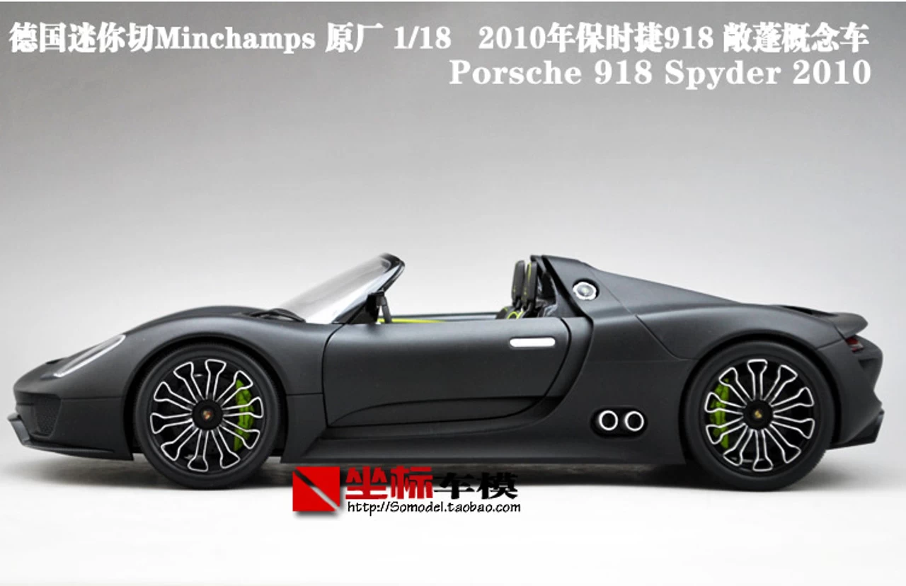 Brand New In Box Highly Detailed 1/18 Minichamps Porsche 918 Convertible (Matte Black) Diecast Model