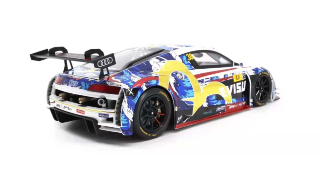 1/18 POPRACE Audi R8 LMS Macau GT Cup 2020 Audi Sport Asia Team X Works Evisu Racing #38 Marchy Lee with Display Cover and base Diecast 2 door open