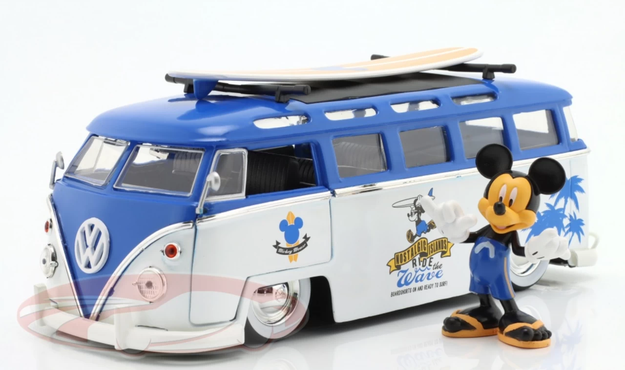 1/24 Jada Volkswagen VW T1 Bus Diecast Car Model with Mickey Mouse Figure