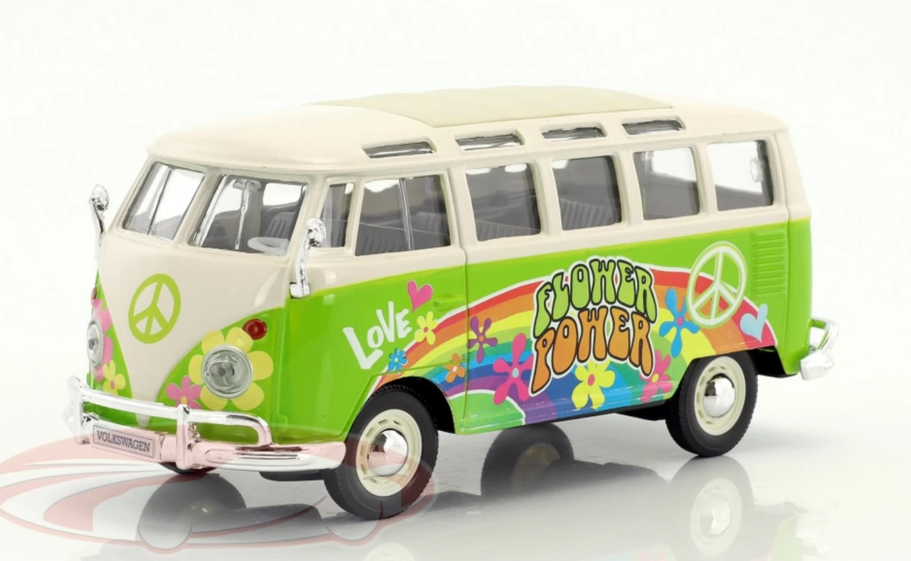 1/24 Maisto Volkswagen VW T1 Samba Bus Hippie Line Flower Power (Green) Diecast Car Model