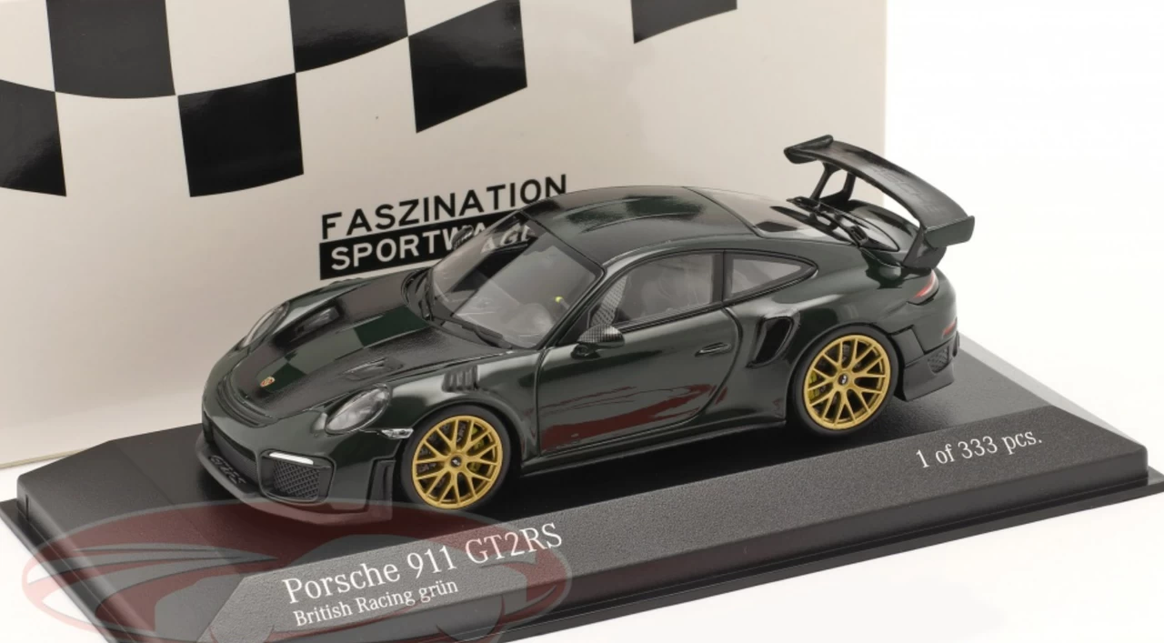 1/43 Minichamps 2018 Porsche 911 (991.2) GT2 RS (British Racing Green with Golden Wheels) Car Model Limited 333 Pieces