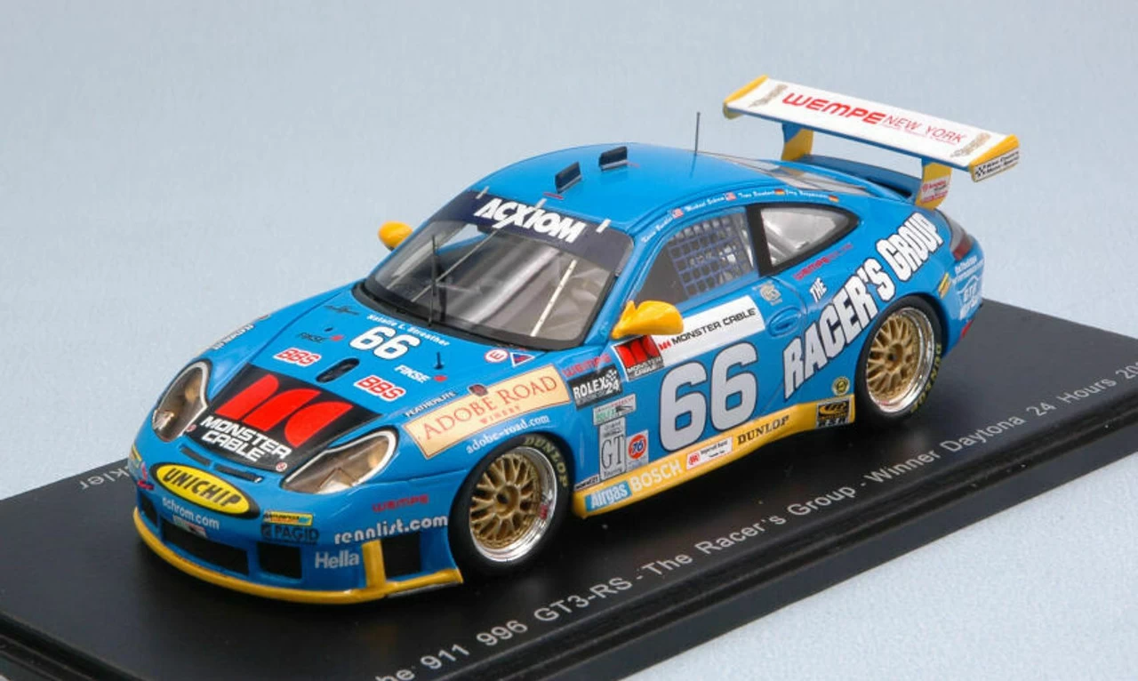 | 1/43 Porsche 911 GT3 RS n.66 Winner 24H of Daytona 2003 J. Bergmeister – T. Bernhard – M. Schrom – K. Buckler model car by Spark |
