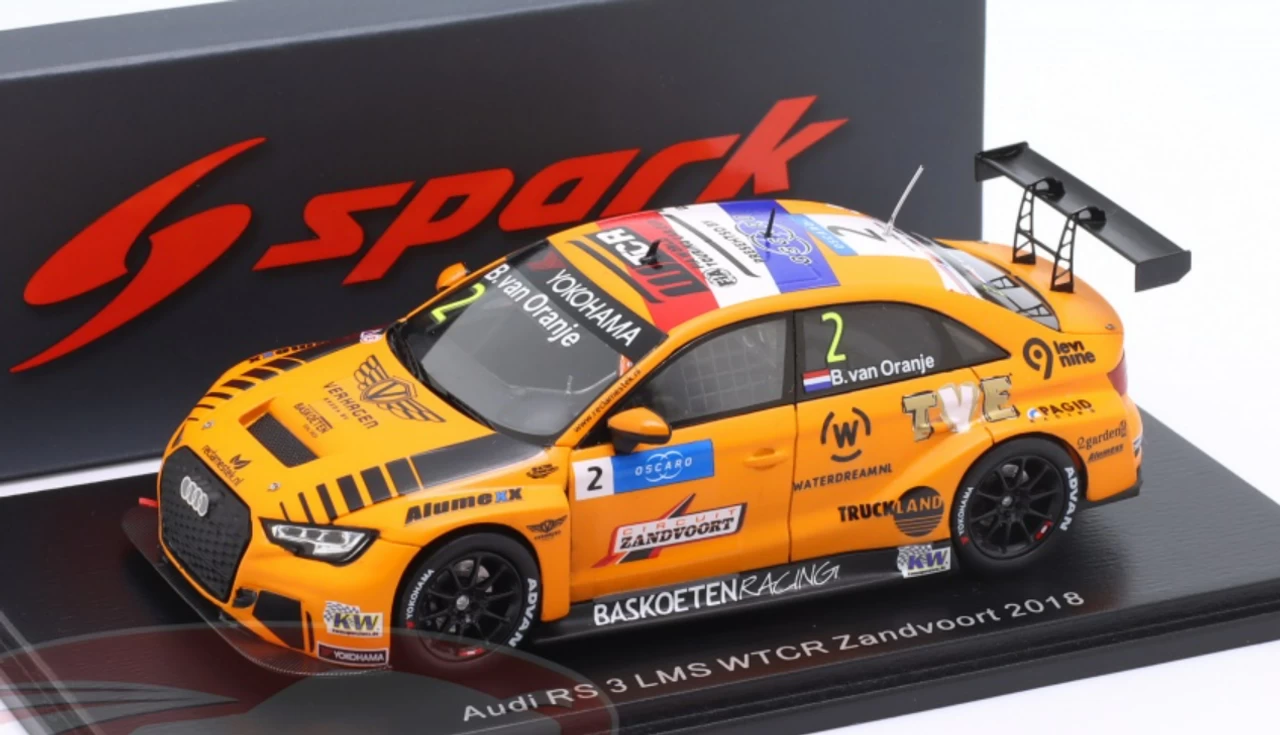 1/43 Spark 2018 Audi RS3 LMS #2 WTCR Zandvoort Bas Koeten Racing Prinz Bernhard Van Oranje Car Model