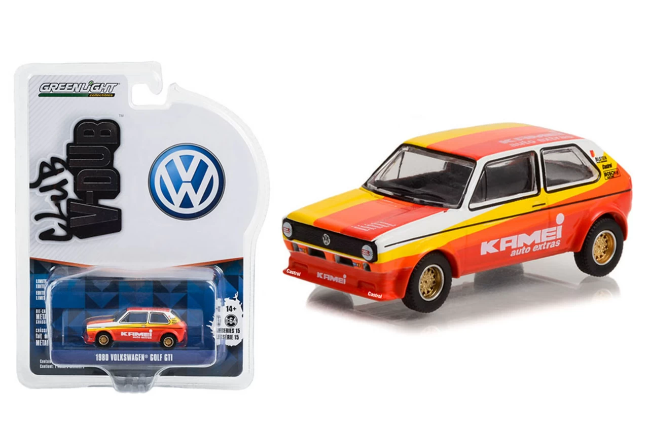1/64 Greenlight Club V-Dub Series 15 1980 Volkswagen Golf GTI Kamei Auto Extras Diecast Car Model