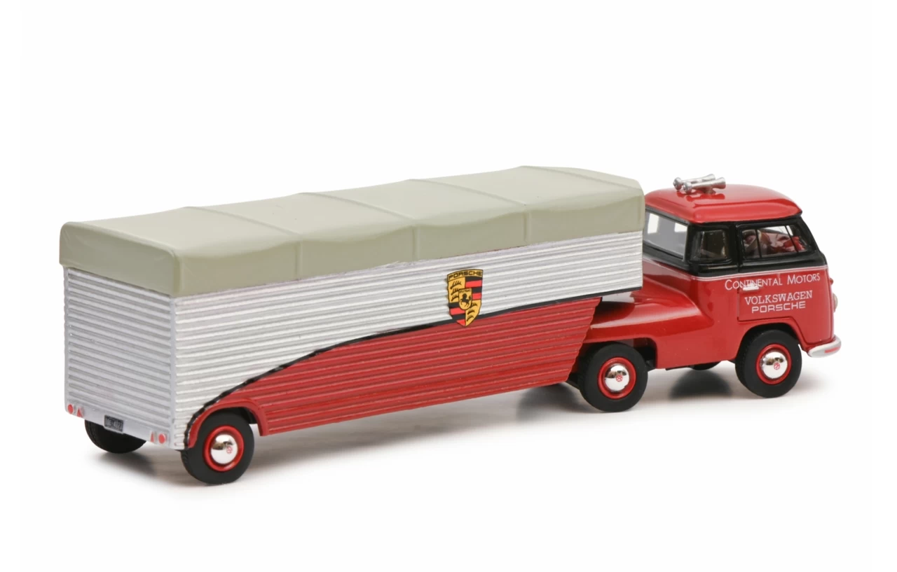 1/64 Schuco Volkswagen VW T1 Continental Motors Porsche Race Car Transporter Model