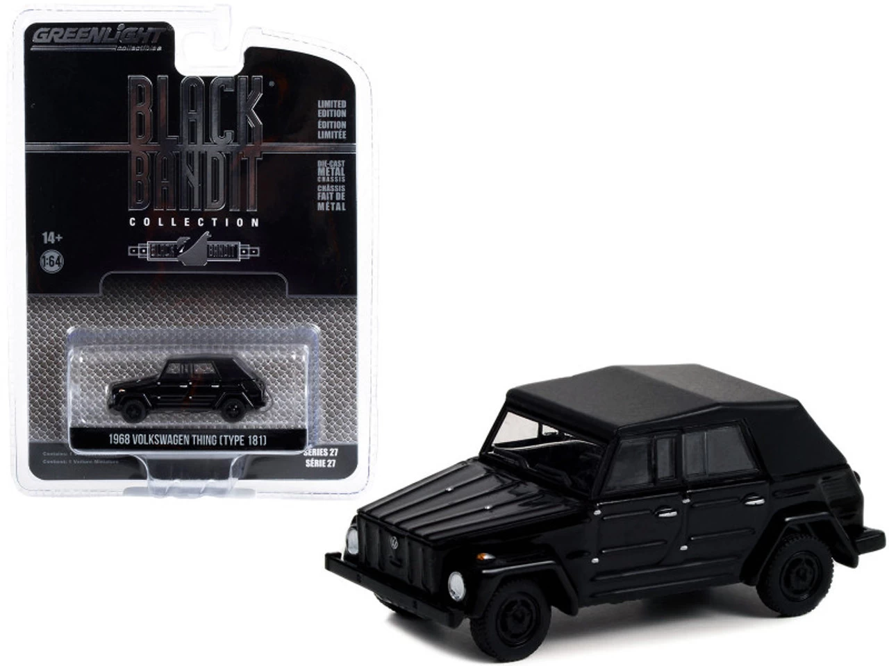 - Brand new 1/64 scale diecast car model of 1968 Volkswagen Thing (Type 181) Black “Black Bandit” Series 27 die cast model car by Greenlight.