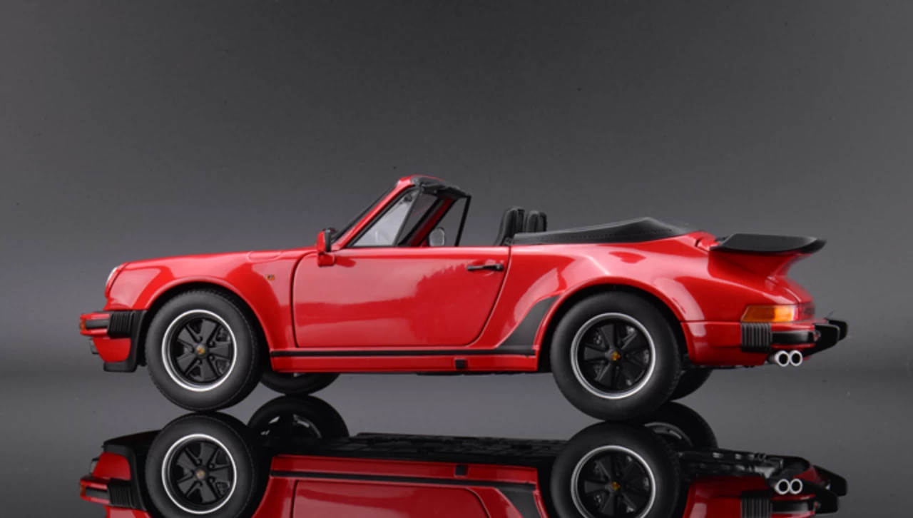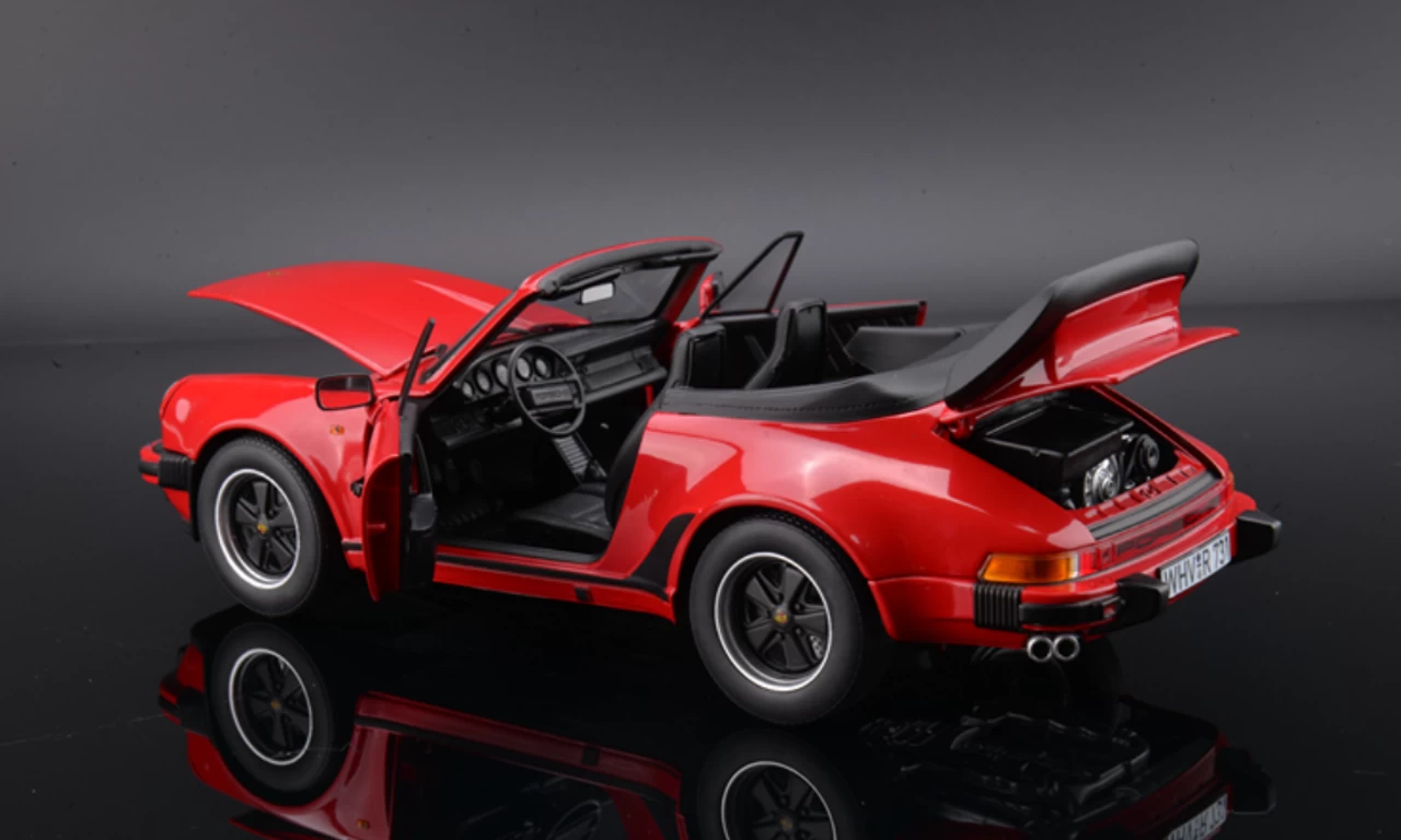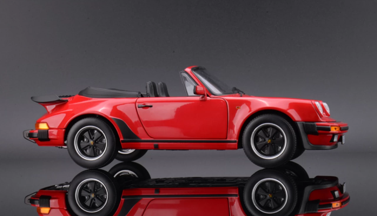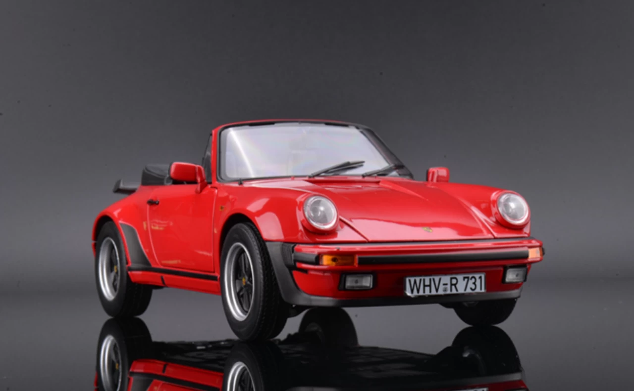 - Brand new 1/18 scale diecast car model of 1987 Porsche 911 Turbo Cabriolet Red die cast model car by Norev.