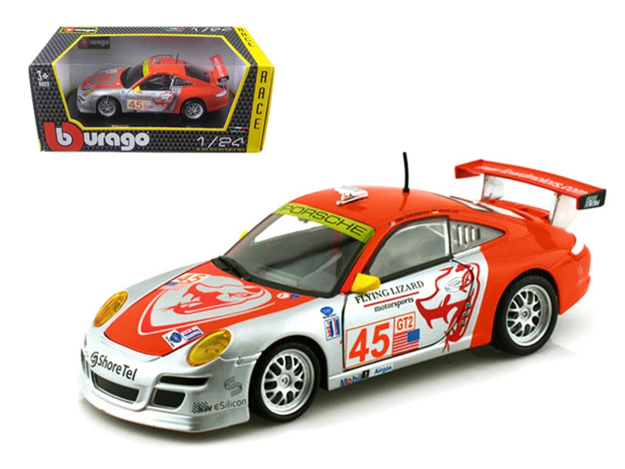 - Brand new 1:24 scale diecast model car of Porsche 911 GT3 RSR #45 “Flying Lizard” die cast car model by Bburago.